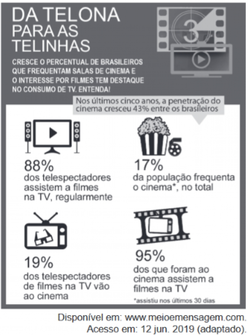 A partir da leitura dos textos motivadores e com base nos conhecimentos construídos ao longo de sua formação, redija texto dissertativo-argumentativo em modalidade escrita formal da língua portuguesa sobre o tema “Democratização do acesso ao cinema no Brasil”, apresentando proposta de intervenção que respeite os direitos humanos. Selecione, organize e relacione, de forma coerente e coesa, argumentos e fatos para defesa de seu ponto de vista