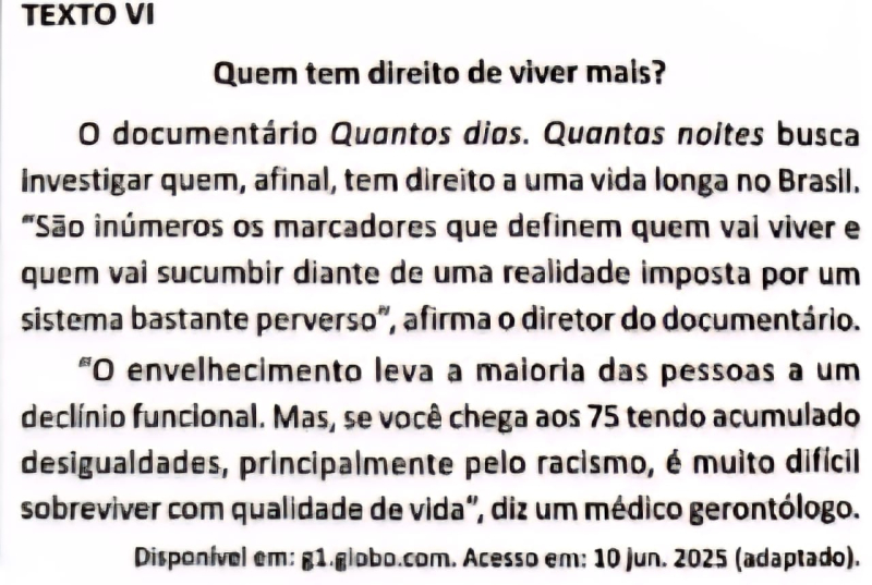A partir da leitura dos textos motivadores e com base nos conhecimentos construídos ao longo de sua formação, redija um texto dissertativo-argumentativo em modalidade escrita formal da língua portuguesa sobre o tema "Perspectivas acerca do envelhecimento na sociedade brasileira", apresentando proposta de intervenção que respeite os direitos humanos. Selecione, organize e relacione, de forma coerente e coesa, argumentos e fatos para a defesa de seu ponto de vista